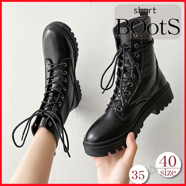 ポイント超超祭利用可 ショートブーツ レディース ワークブーツ 厚底 美脚 レースアップ 靴 ブーツ 革靴 エンジニア カジュアル シューズ フェイクレザー アンクル PU