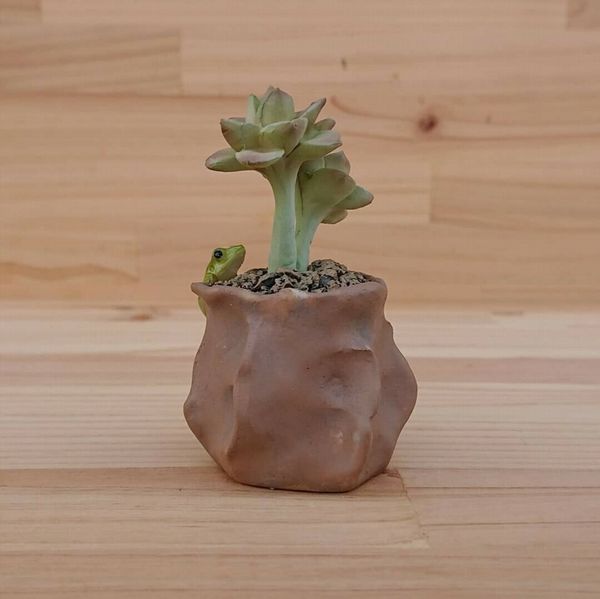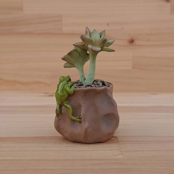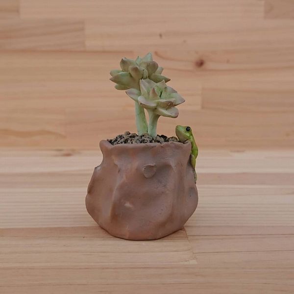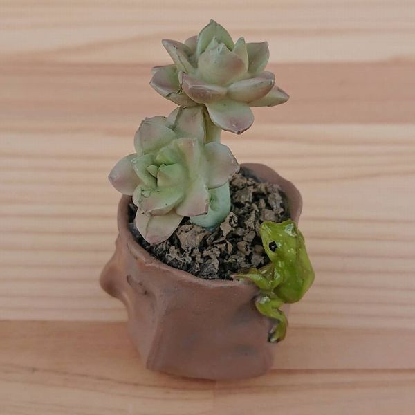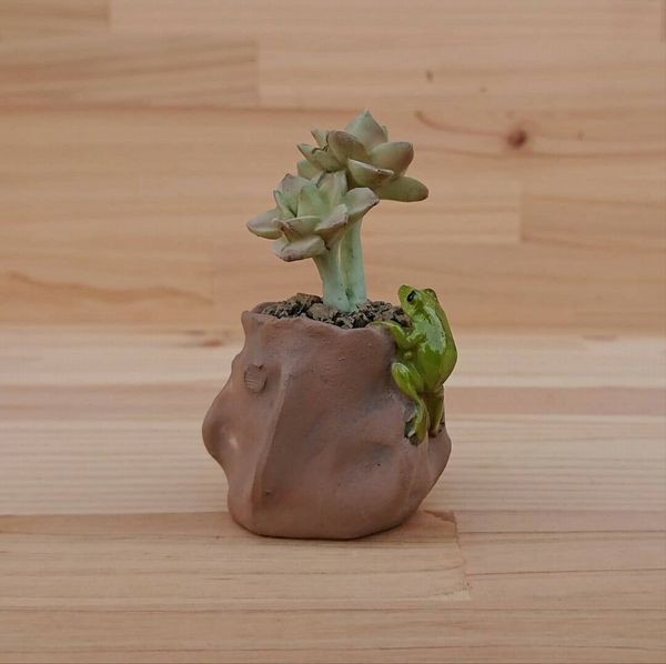 多肉植物と蛙