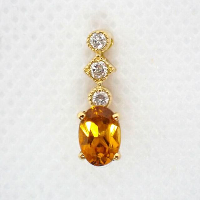 【新品】K18 シトリン/ダイヤモンド オーバルカット ペンダント/トップ[f1-18]