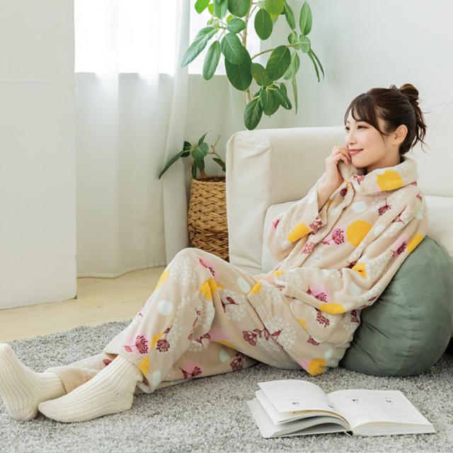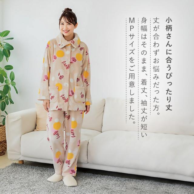 小柄さんも着れる『選べるわたしサイズ』。あったかフリース素材、北欧調フラワーパジャマ。
