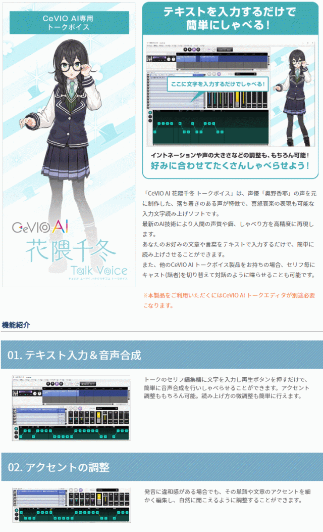 | CeVIO AI 花隈千冬 トークボイス スペック情報 | |