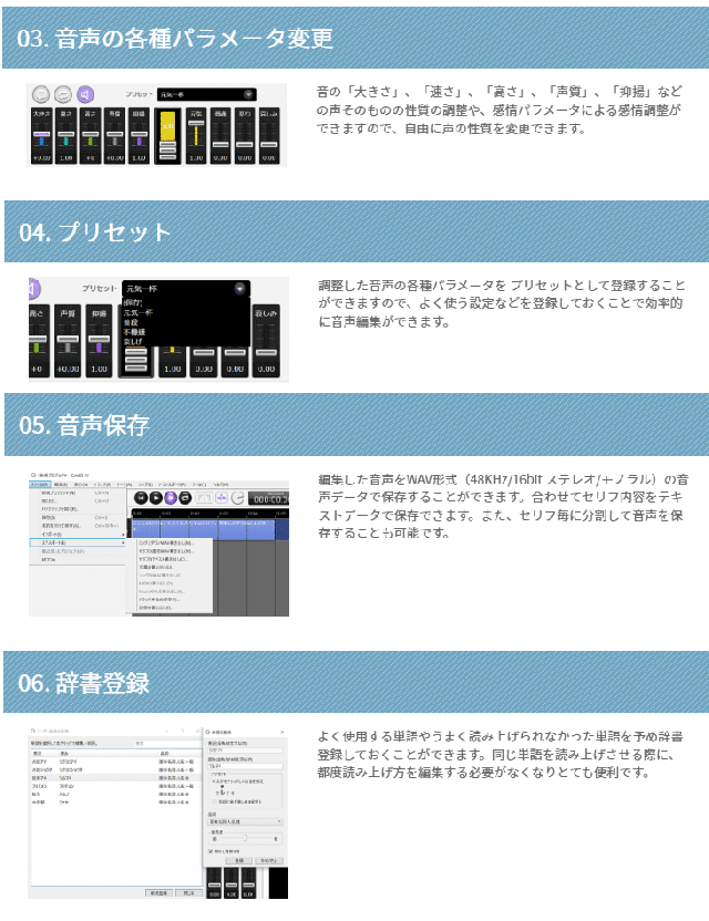 SAHS40412 声優「奥野香耶」の声を元に制作した、落ち着きのある声が特徴で、喜怒哀楽の表現も可能な入力文字読み上げソフトです。