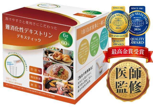 【医師監修】難消化性デキストリン 水溶性食物繊維 デキスティック 大容量(6g×60包) サッとすぐ溶けて持運びできるスティックタイプ フランス産とうもろこし