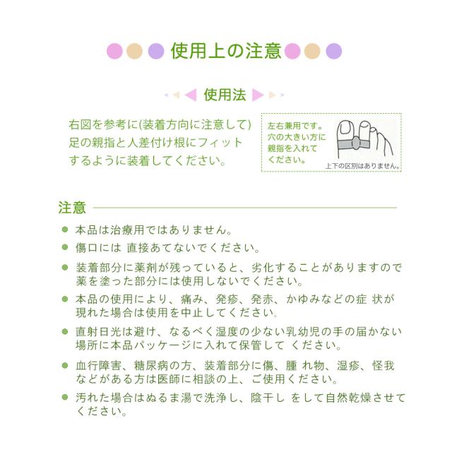足の親指と人差し指の付け根にフィットするように装着してください。