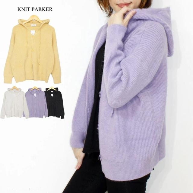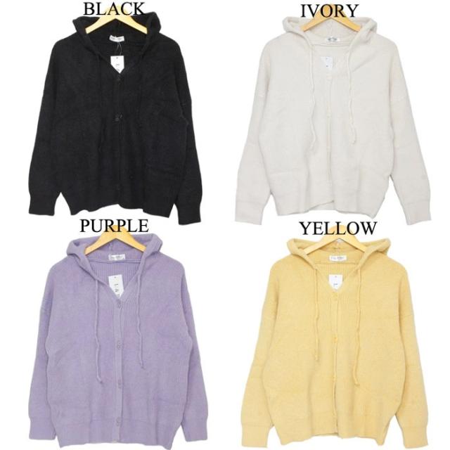 【即納】リブニットパーカーカーディガン トップス アウター シンプル 無地 カジュアル パステル 長袖 AW 秋冬