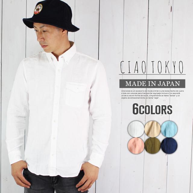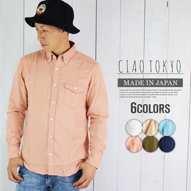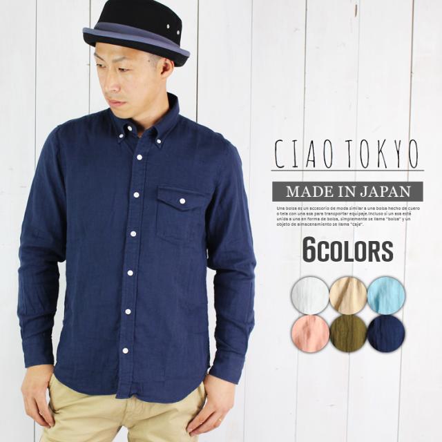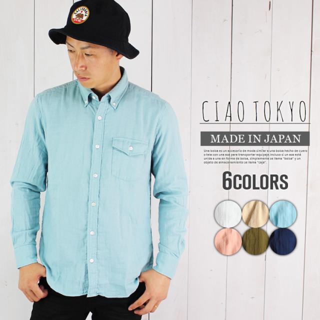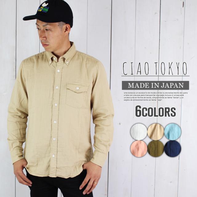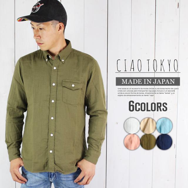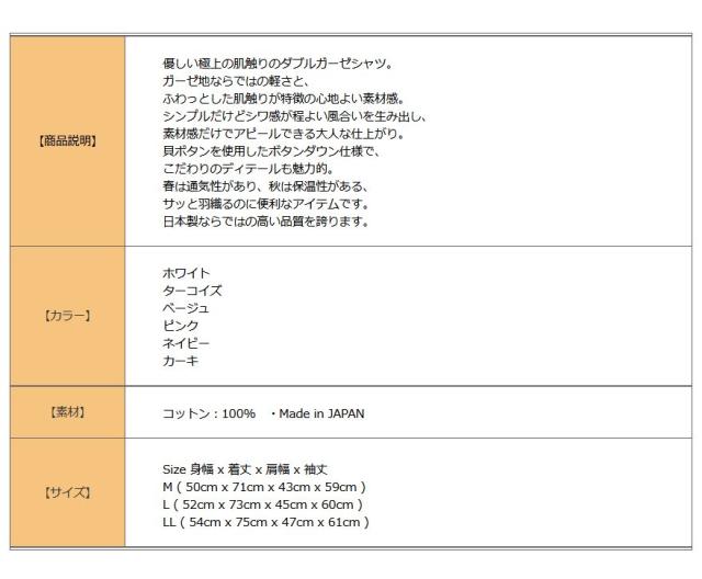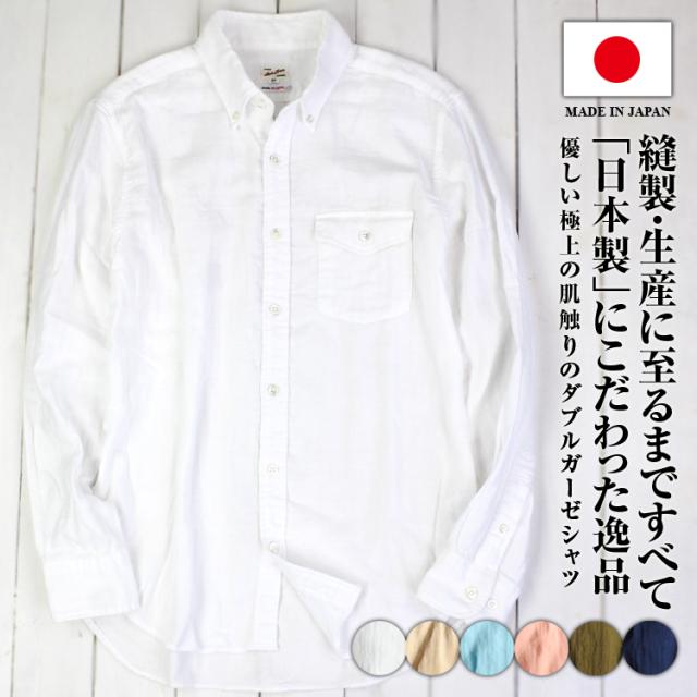 国産 長袖 シャツ 無地 ガーゼシャツ ボタンダウンシャツ 貝ボタン おしゃれ 日本製 ダブルガーゼ 長袖シャツ コットン 綿 誕生日 プレゼント 001-91