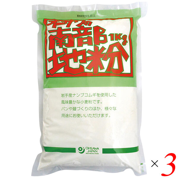 【2/23 9:59まで!当店5%+サンキュー配送+5%還元!】中力粉 国産 岩手 オーサワの南部地粉(中力粉) 1kg 3個セット