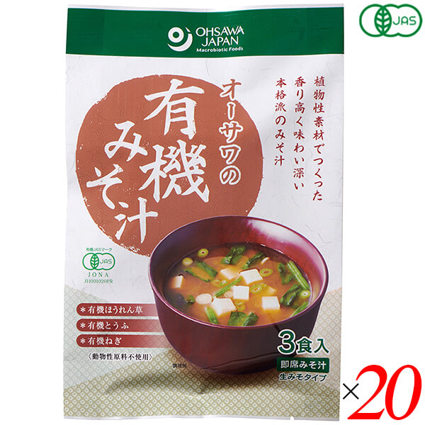 【超BIGラリー!ポイント最大+16%!】みそ汁 味噌汁 インスタント オーサワの有機みそ汁(生みそタイプ)52.5g(3食入) 20個セット 送料無料