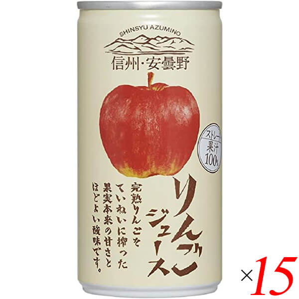 りんごジュース ストレート 無添加 信州・安曇野りんごジュース(ストレート) 190g 15個セット ゴールドパック 送料無料