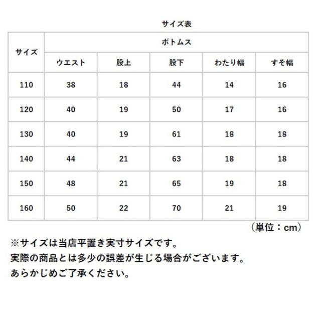 | サイズ | [キッズ] ・110サイズ ・120サイズ ・130サイズ ・140サイズ ・150サイズ ・160サイズ ※サイズについて詳細は、商品画像の中にあるサイズ表をご覧くださいませ。 |