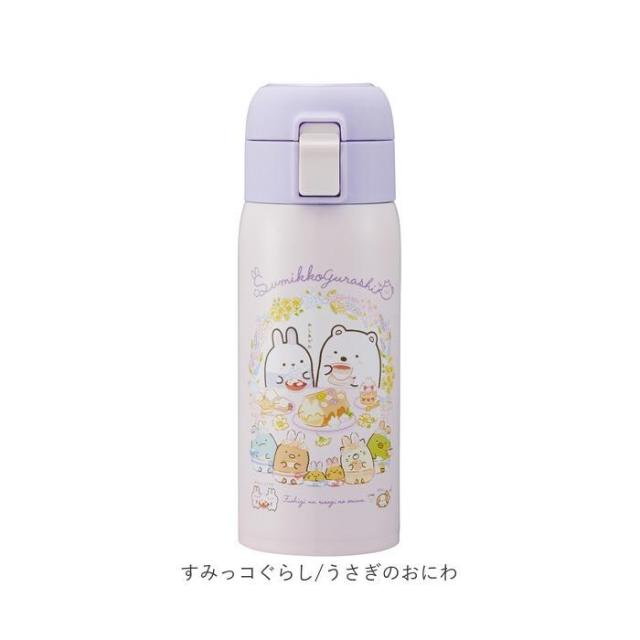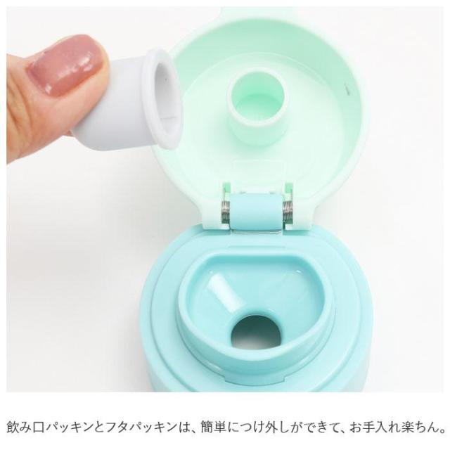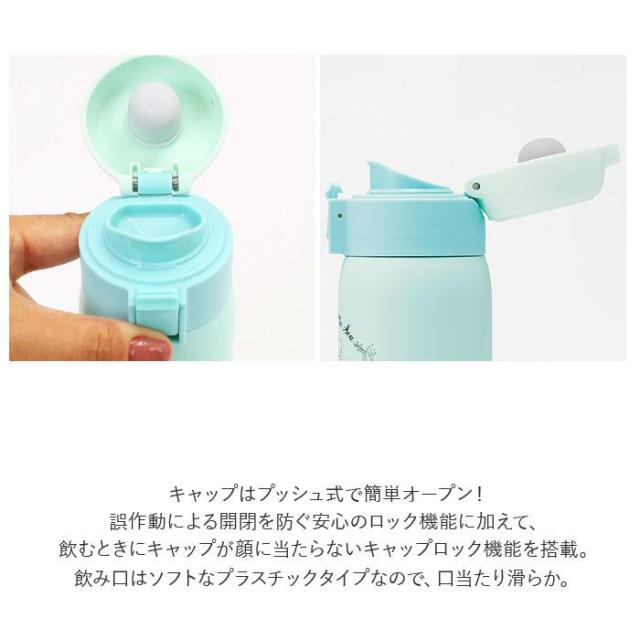 片手でポンッとワンタッチオープン!飲みたいときにサッと飲める「ステンレスワンタッチマグボトル」(350mlタイプ)。温かいお茶も冷たいドリンクも、飲み頃温度を保って美味しく楽しめるステンレス真空二重構造採用。キャップはプッシュ式で簡単オープン!誤作動による開閉を防ぐ安心のロック機能に加えて、飲むときにキャップが顔に当たらないキャップロック機能を搭載。飲み口はソフトなプラスチックタイプなので、口当たり滑らか。いつでもどこでもこまめに水分補給♪ボトル開口部が広口になったワイド設計で、飲み物に氷が入れやすく、毎朝のドリンクの準備がより手軽に。飲み口パッキンとフタパッキンは、簡単につけ外しができて、お手入れ楽ちん。水切りカゴで迷子にならず、見つけやすいカラーパッキン仕様。通勤・通学用のカバンにちょこんと入れて持ち運びに便利な、容量350mlタイプ。学生さんにはもちろん、オフィスで働くOLさんにも人気のキャラクターが勢ぞろい!お気に入りをチョイスしてね♪