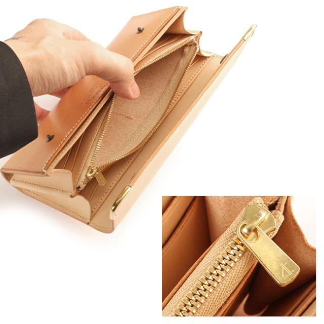 ファスナー部分は、日本シェアNO.1のYKK製。その中で最も高級なEXCELLA®ファスナーを使用。他にも、使ううちにヴィンテージのように味が出てくる真鍮パーツや、革職人の技が光る縫製の精度・美しさなど、細部にも妥協を許さないディテールです。ボタンを開閉するとMADE BY CRAFTSMANのブランドロゴが刻印されています。化粧箱が付きますので、ギフトにもおすすめです。