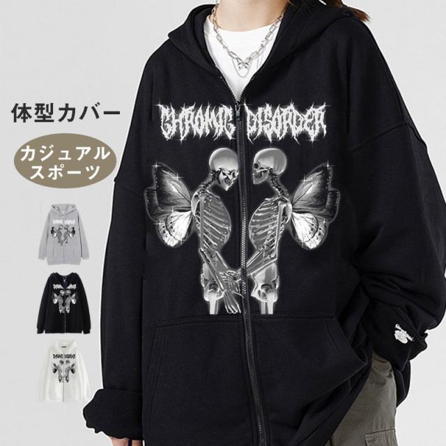 パーカー レディース メンズ カップル オーバーサイズ 秋冬 チュニック 前開き ゆったり ジップ アウター 羽織り 長袖 フード