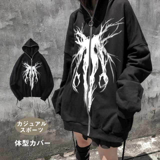 パーカー レディース メンズ カップル オーバーサイズ 秋冬 チュニック 前開き ゆったり ジップ アウター 羽織り 長袖 フード