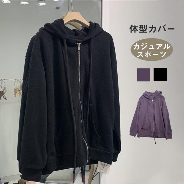 パーカー レディース 韓国 オーバーサイズ 秋冬 チュニック 前開き ゆったり ジップアップ アウター 羽織り 長袖 フード カジ