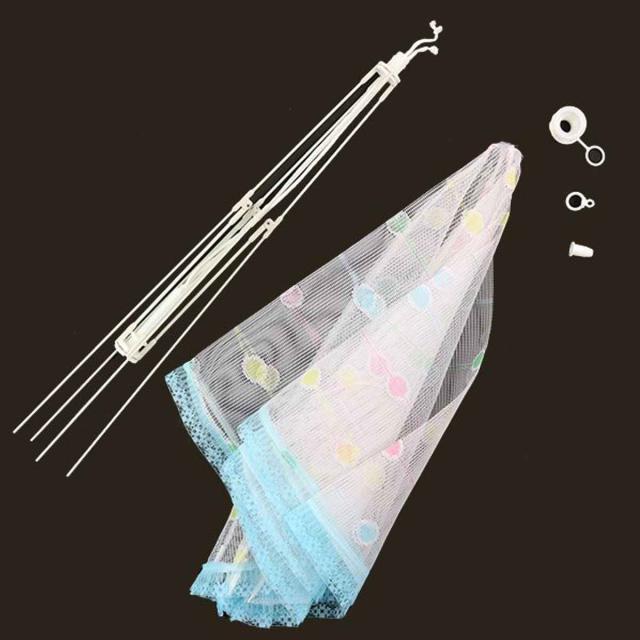 傘のような構造になっており、ワンタッチで開け閉めできる仕組みになっています。紐を引っ張ると、軽い力でパッと開きます。閉じるときは、プラスチックバーを下へ押し込むとサッと簡単に閉じてくれるので、安全にお使いいただけます。