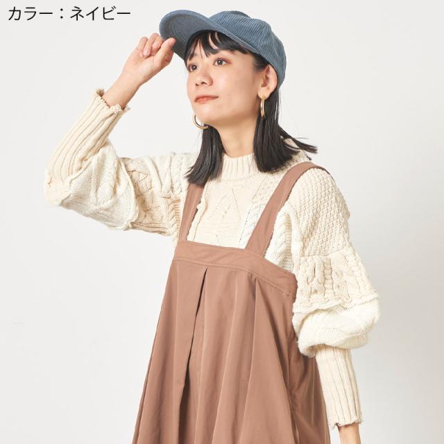 コーディロイ素材で見た目も暖かく、ツバも少し長めのデザインなのでかぶりやすく、小顔効果もあります。
