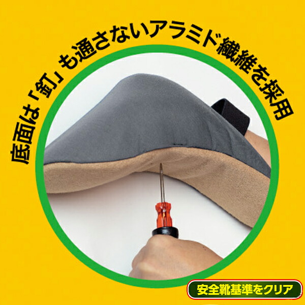 | 商品説明 | ●安全靴基準をクリアしたスリッパ ●ソールには防弾チョッキにも使われているアラミド繊維を使用 ●屋内屋外兼用 ●ゴム付きでピタッとフィット ●手洗い可能 【適合足サイズ】 M:20-27cm L:24-29cm |