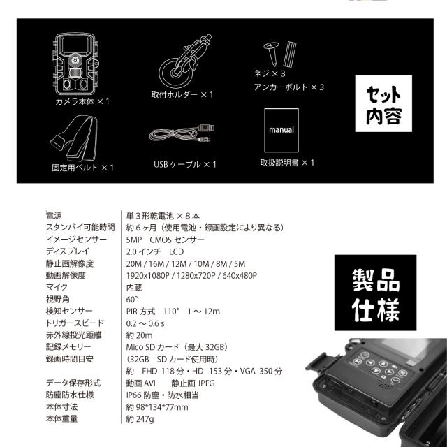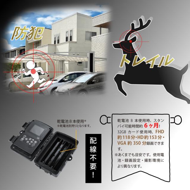 ・録画時間目安:(32GBカード使用時)約FHD 118分・HD 153分・VGA 350分