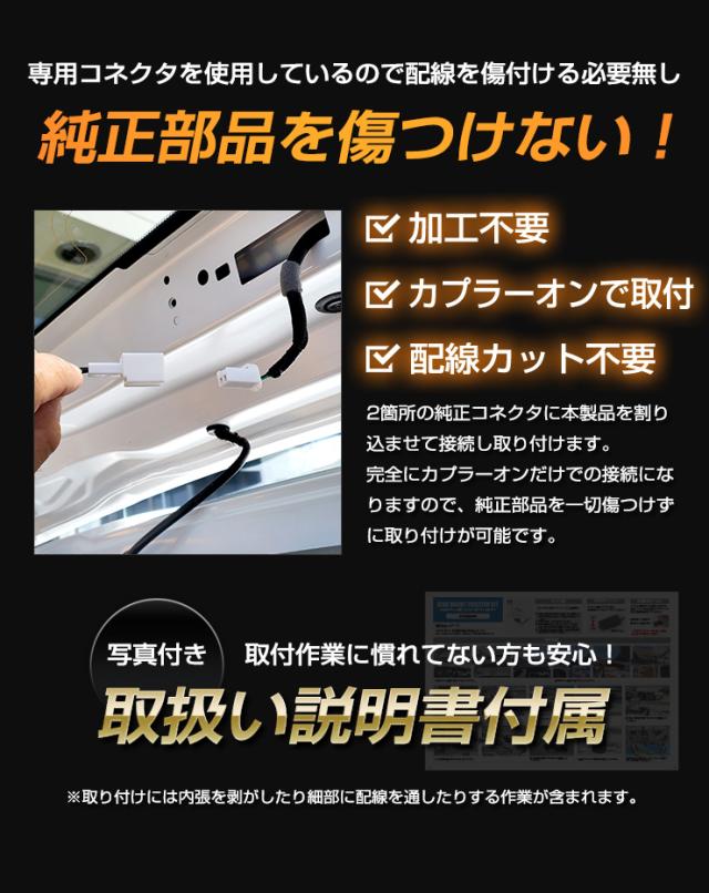 ブレーキ時にしか光らないハイマウントをポジション化するハーネスキットが新登場! ポジション時にハイマウントを点灯させることで後続車からの認識性アップ。 ON/OFFスイッチ付きだから車検時には電源OFFで純正に戻すことが可能です。 ポジション点灯時の明るさは減光調整可能! 減光調整を行ってもブレーキを踏んだ時には純正と同じ100%の明るさで点灯しますのでご安心ください。 専用コネクタを使用しているため純正の配線を傷つけずに取付が可能です。 |