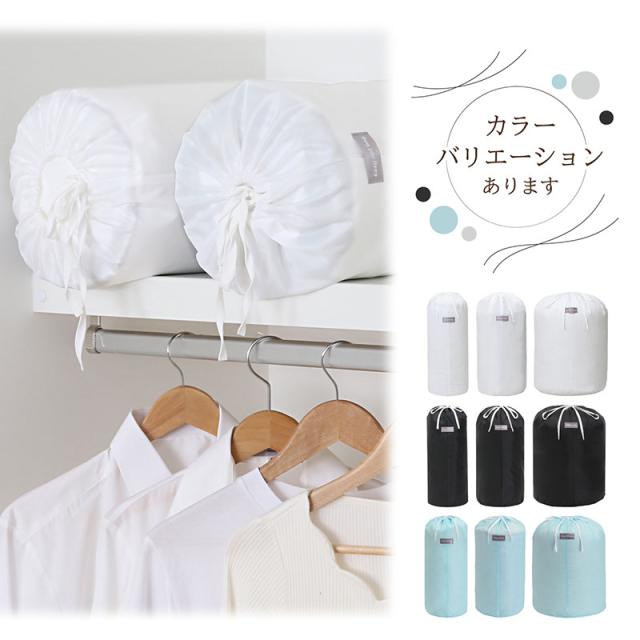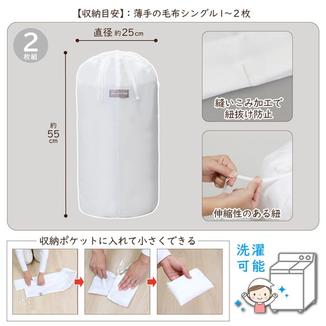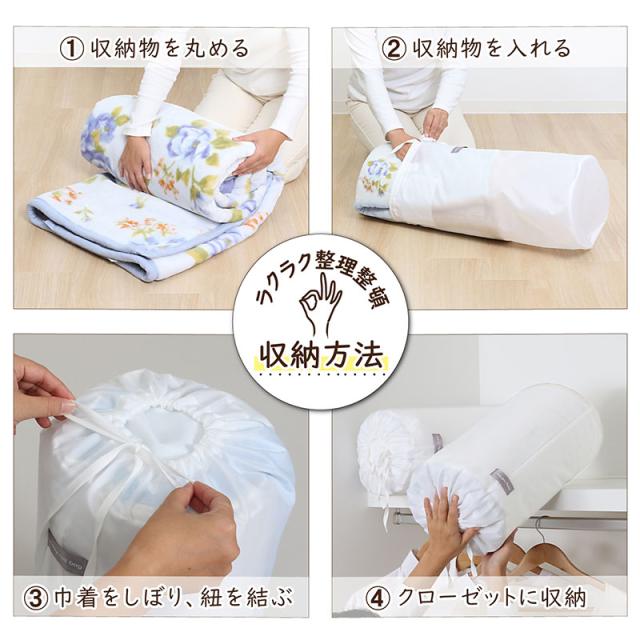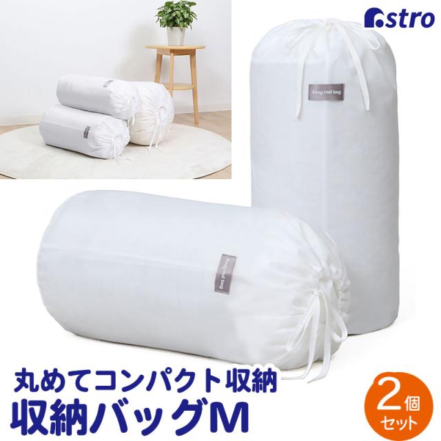 アストロ 収納袋 ホワイト Mサイズ 2枚組 丸めて簡単収納 毛布収納 巾着袋 収納バッグ 筒型 縦置き 積み重ね保管 626-05