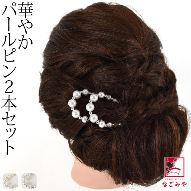 和装 髪飾り 成人式 振袖 通年用 日本製 パール ピン 2本セット PP袋入 U字コーム 付け足し 礼装 おしゃれ 大人 レディース 女性10023218