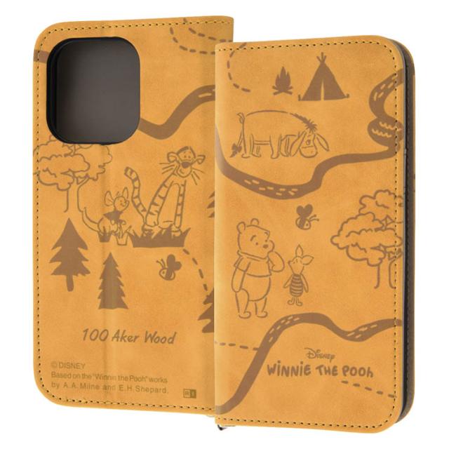 iPhone 14 Pro 手帳型 スマホ ケース カバー ディズニー プーさん モノトーン PU レザー 耐衝撃 カード 収納 ポケット ストラップホール 付 スタンド機能付き