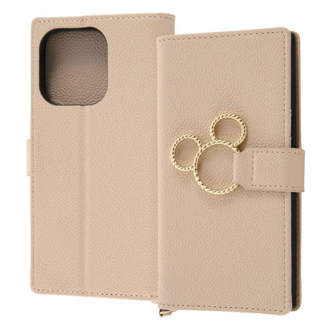 iPhone 14 Pro 手帳型 スマホ ケース カバー リング付き ディズニー ミッキー アイコン ミツマル ベージュ PU レザー 耐衝撃 カード 収納 ポケット ストラップホール 付 スタンド機能付き