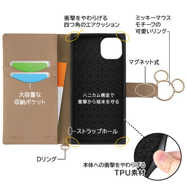 iPhone 14 Plus 手帳型 スマホ ケース カバー リング付き ディズニー ミッキー アイコン ミツマル モカ ブラウン PU レザー 耐衝撃 カード 収納 ポケット ストラップホール 付 スタンド機能付き