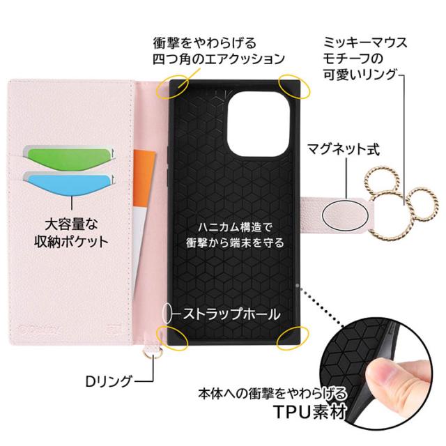 iPhone 14 Pro Max 手帳型 スマホ ケース カバー リング付き ディズニー ミッキー アイコン ミツマル ピンク PU レザー 耐衝撃 カード 収納 ポケット ストラップホール 付 スタンド機能付き
