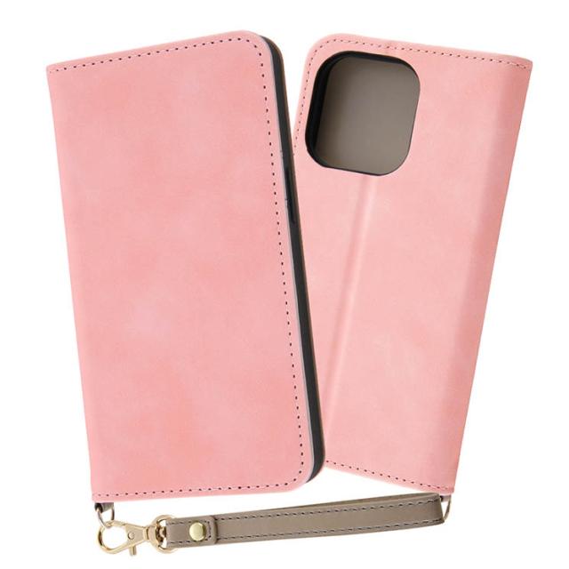 iPhone 14 Pro 手帳型 スマホ ケース カバー Raffine ピンク PU レザー 耐衝撃 カード 収納 ポケット ストラップホール 付 スタンド機能付き
