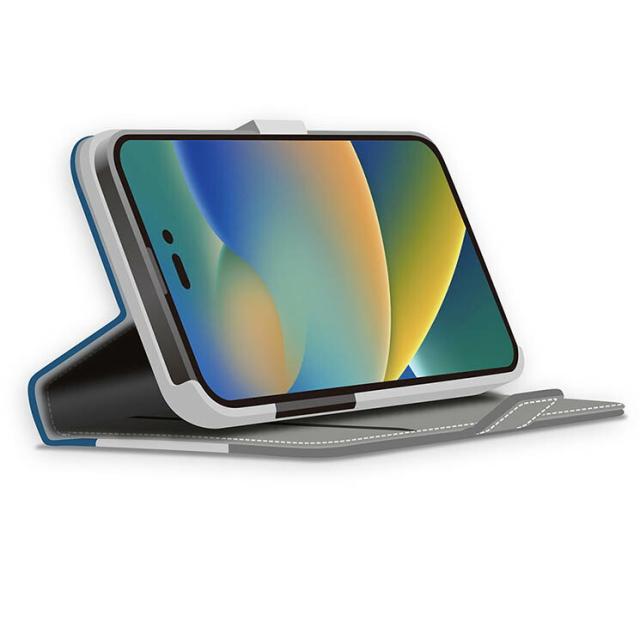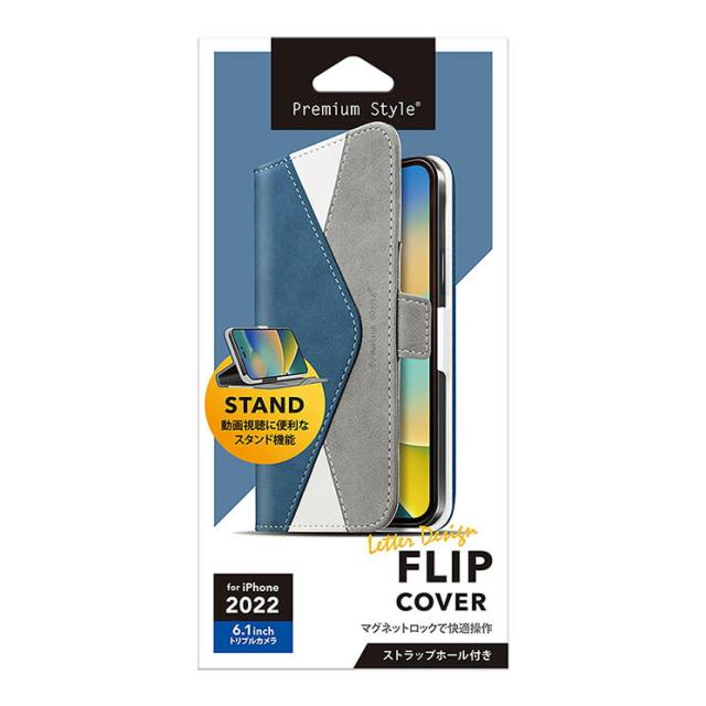 iPhone 14 Pro 手帳型 ケース シンプル レザー カバー スマホケース おしゃれ かわいい カード ポケット 収納 スタンド レター デザイン ブルー 青 アイフォン アイホン プロ PGA PG-22QFP06BL