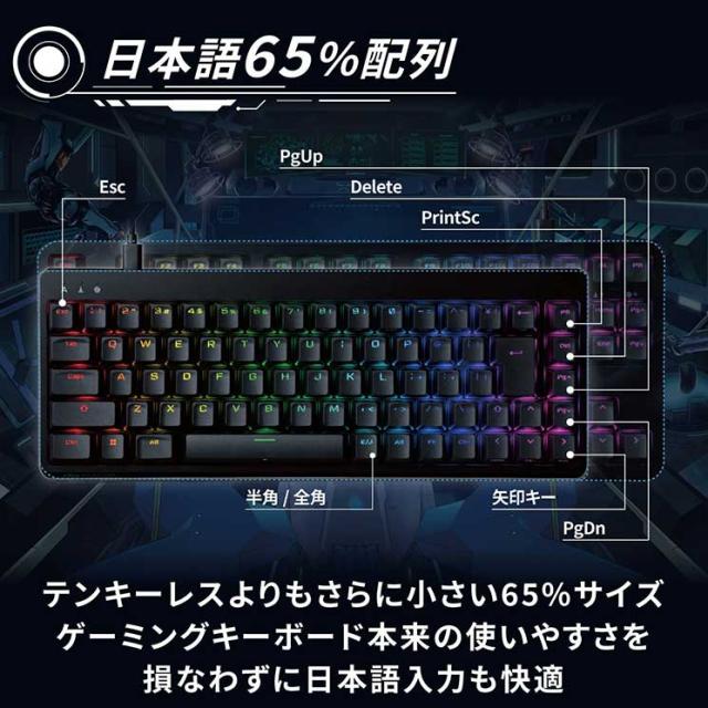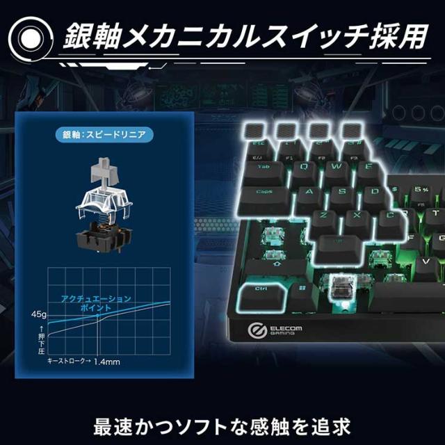 エレコム ゲーミングキーボード 【V custom】 有線 着脱式ケーブル RGB メカニカル ( 銀軸 / スピードリニア ) 日本語配列 テンキーレス USB Aポート×1 ブラック ELECOM
