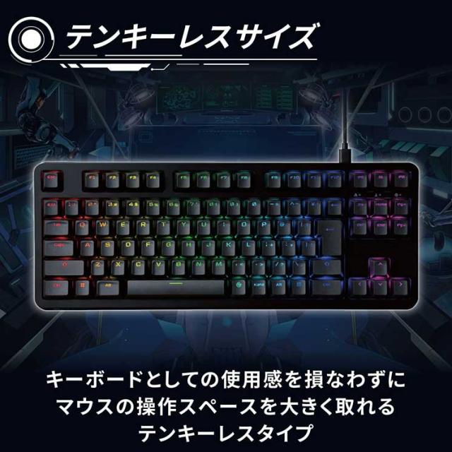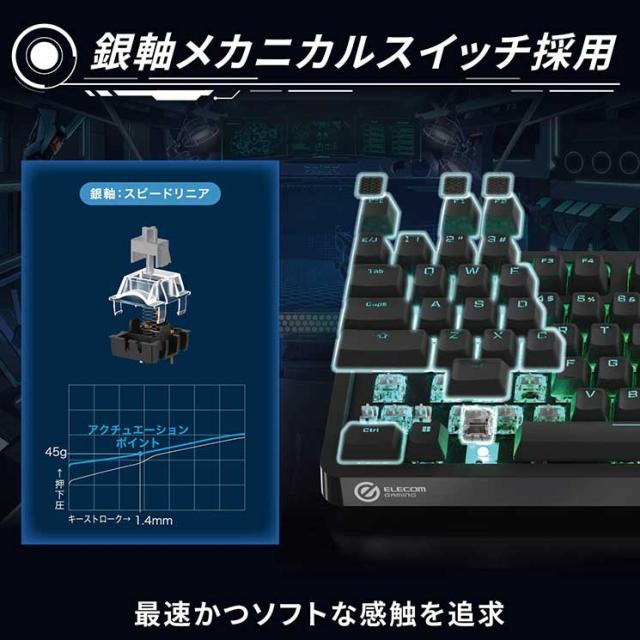 エレコム ゲーミングキーボード 【V custom】 有線 着脱式ケーブル RGB メカニカル ( 銀軸 / スピードリニア ) 日本語配列 テンキーレス ブラック ELECOM