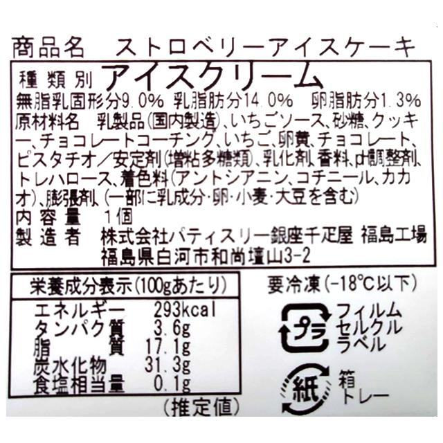 2026 ケーキ スイーツ 贈り物 ギフト Gift パティスリー銀座千疋屋 送料無料 ストロベリーアイスケーキ