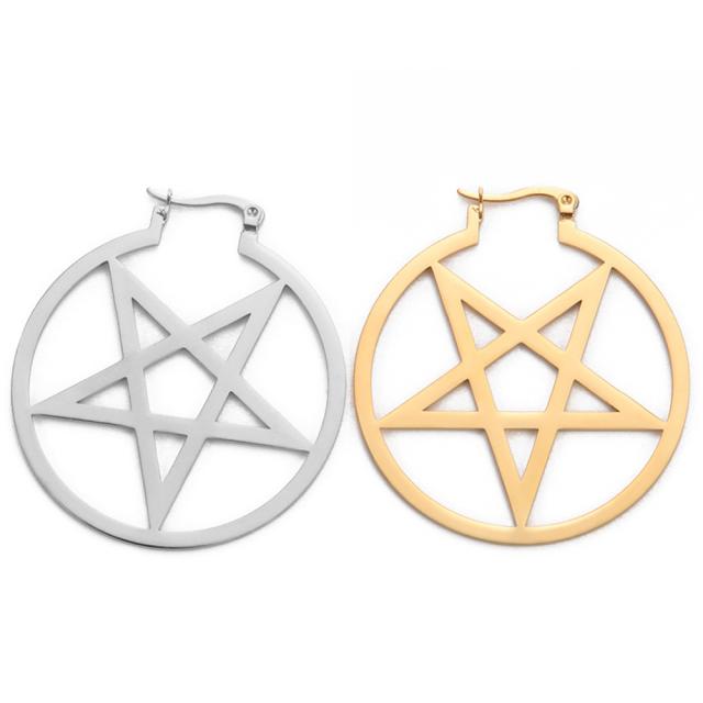 丸いラウンド型のフレームに星をデザインしたお洒落なステンレスピアス。