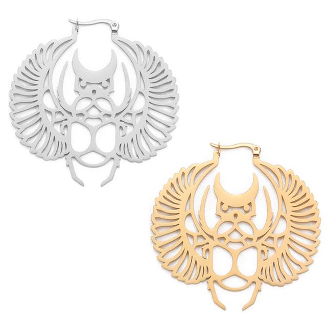 スカラベステンレスフープピアス 1個販売 片耳 アックスポスト ステンレスピアス リングピアス 綺麗 おしゃれ 大きい 18G 18ゲージ 耳 軟骨 メンズ レディース 人気 プレゼント 彼氏 彼女 男 女 ゴールド シルバー 金色 銀色 ムシ 昆虫 虫 おもしろい エジプト ピラミッド