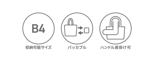 クシャクシャに丸めて収納が出来る、パッカブル仕様のエコバッグ。本体に縫い付けられた収納袋にバッグをしまい込むデザインとなっており、収納袋を紛失する心配がありません。食品だけでなく、ジムに行くときなどの着替え類も収まるビッグサイズです。持ち手部分にゆとりがあるので、肩掛けも可能。ベルトループやバッグに取り付けられるカラビナを装備し、持ち運びにも便利なアイテムです。