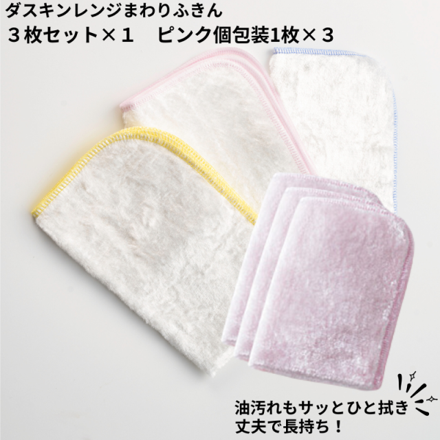 ■ダスキン レンジまわりふきん ホワイト3枚入り & ピンク 3枚 個包装 セット