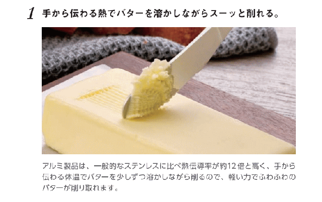 ・熱伝導の良いアルミニウム製バターナイフ