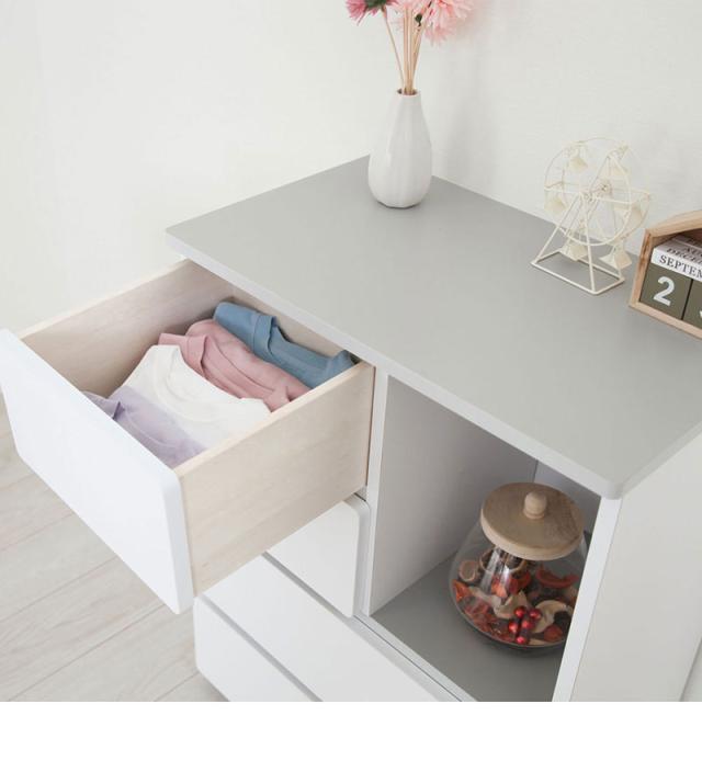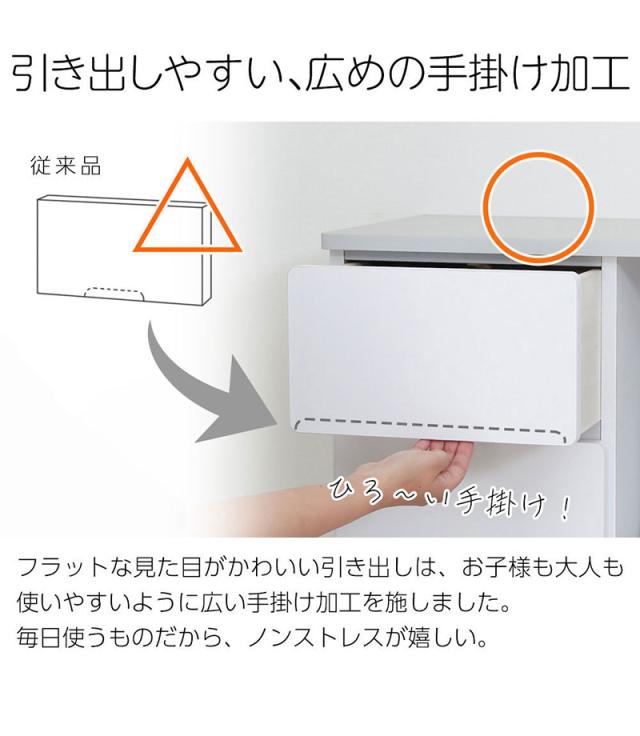 引き出しの取っ手を広めにしかも軽くすることでお子さんでも使いやすい設計に。