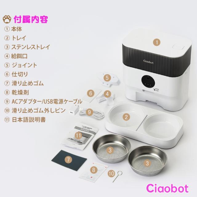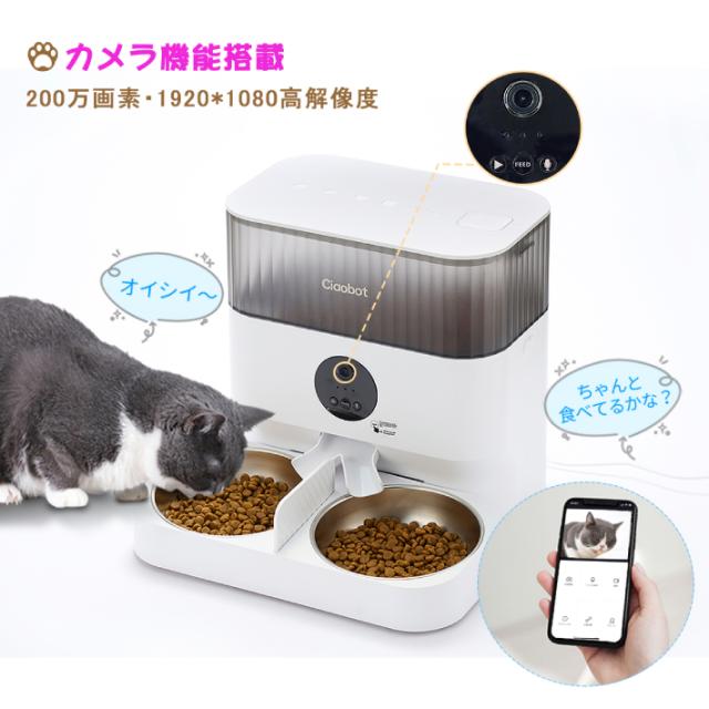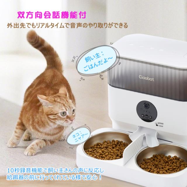 Ciaobot (チャオボット) 自動給餌機 猫2匹 自動餌やり機 猫カメラ 餌 犬自動餌やりカメラ タイマー式 カメラ付き 見守りカメラ 録画 音声 多頭 餌やり機 ペット タイマー ペットフィーダー 時間指定 お留守番 乾燥剤入り 取り外し可能 ネコ イヌ