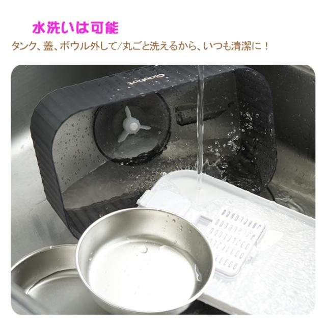 ・フードタンクは5Lの大容量。残量が一目で分かるクリアなタンク。