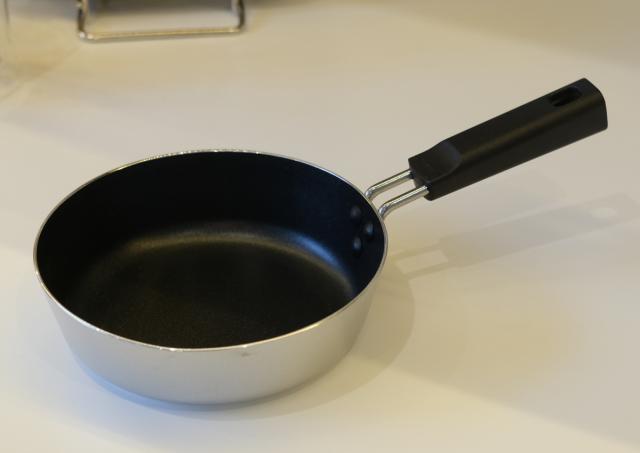 | 材質 | 本体:アルミニウム合金 はり底:ステンレス鋼(クロム16%) 取っ手:フェノール樹脂 表面加工:内面/ふっ素樹脂、外面/焼付け塗装 |