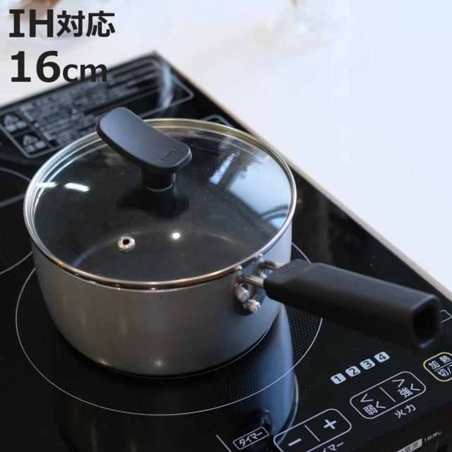 片手鍋 16cm IH対応 チーノ フッ素加工 ガラス蓋付き ( ガス火 IH ih 対応 片手なべ アルミ鍋 蓋付き 小鍋 小ぶり 16センチ フタ付き 鍋 なべ アルミ製片手鍋 調理器具 キッチン用品 1人暮らし 軽量 ふっ素加工 )