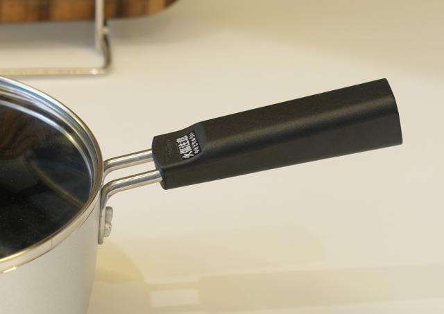 ハンドルは熱くなりにくいフェノール樹脂素材を使用しています。手に自然とフィットするスクエア形状で、しっかり握れて調理しやすい仕様です。