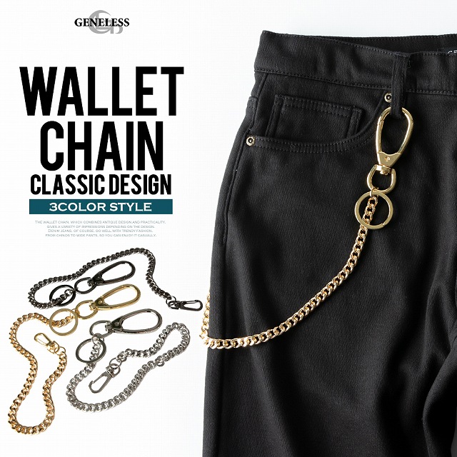 ウォレットチェーン メンズ 財布 チェーン キーチェーン ウォレットロープ 合金 ウォレットコード 太め プレゼント プチギフト シルバー ゴールド 全3色 KC-008