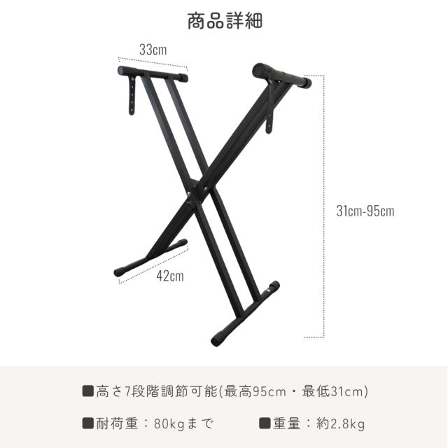 キーボードスタンド 高さ 7段 x型 スタンド キーボード 88鍵 X型 折りたたみ 軽量 安定 高さ調節 キーボード台 電子キーボード 電子ピアノ 台 スタンド 子供 楽器 練習 ライブ 大人 96 32 cm