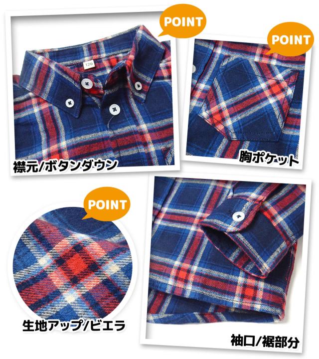 【送料無料】男児 キッズ ビエラ 長袖 チェック シャツ 綿100% 微起毛 ボタンダウン 胸ポケット 子供服 男の子 110cm 120cm 130cm nw-0853【メール便対応】