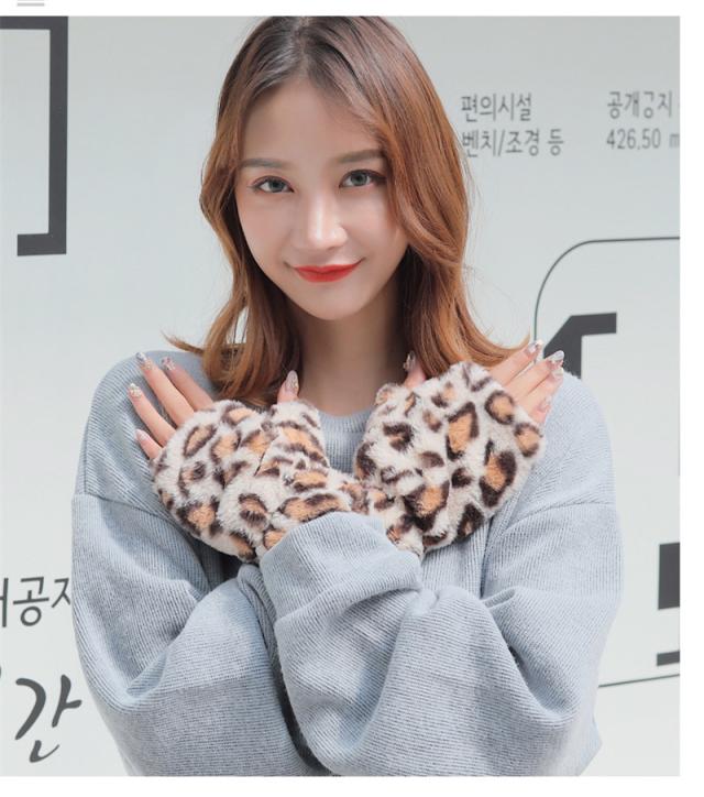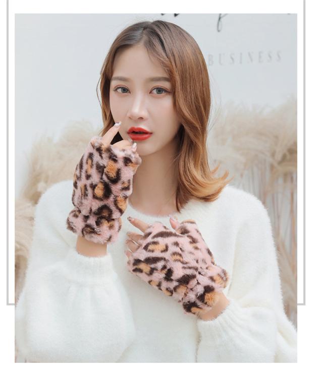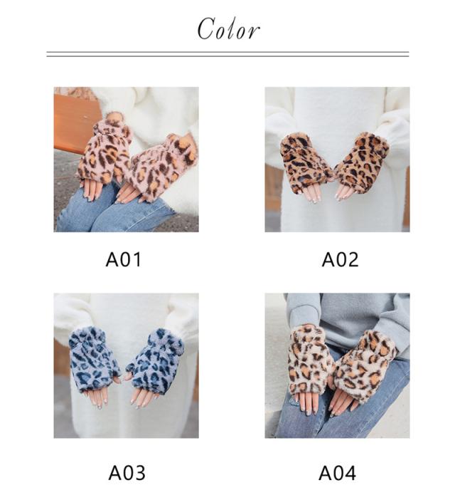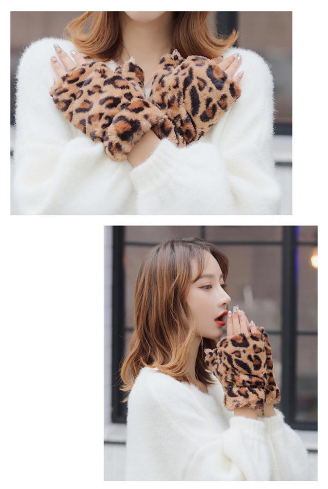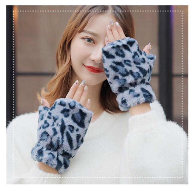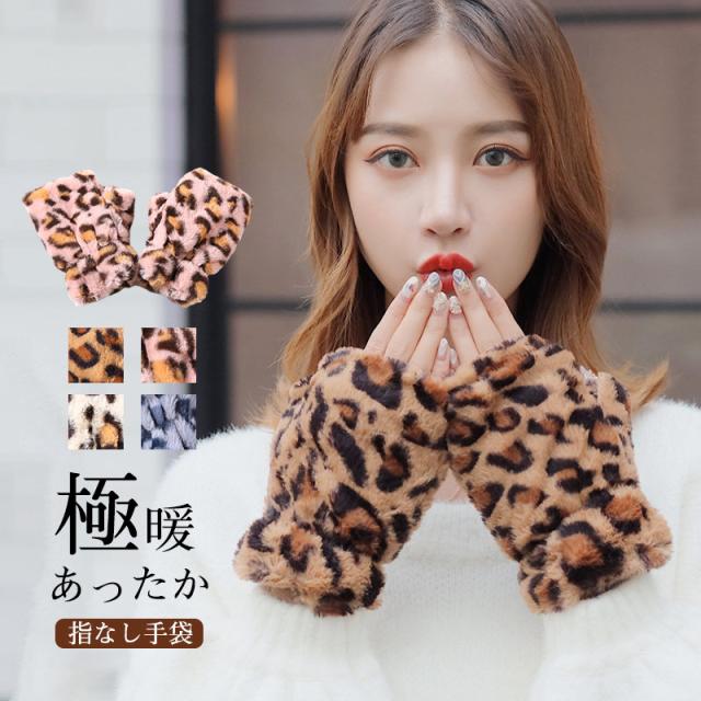 手袋 レディース スマホ対応 グローブ 指なし手袋 防寒グッズ 豹柄 手ぶくろ